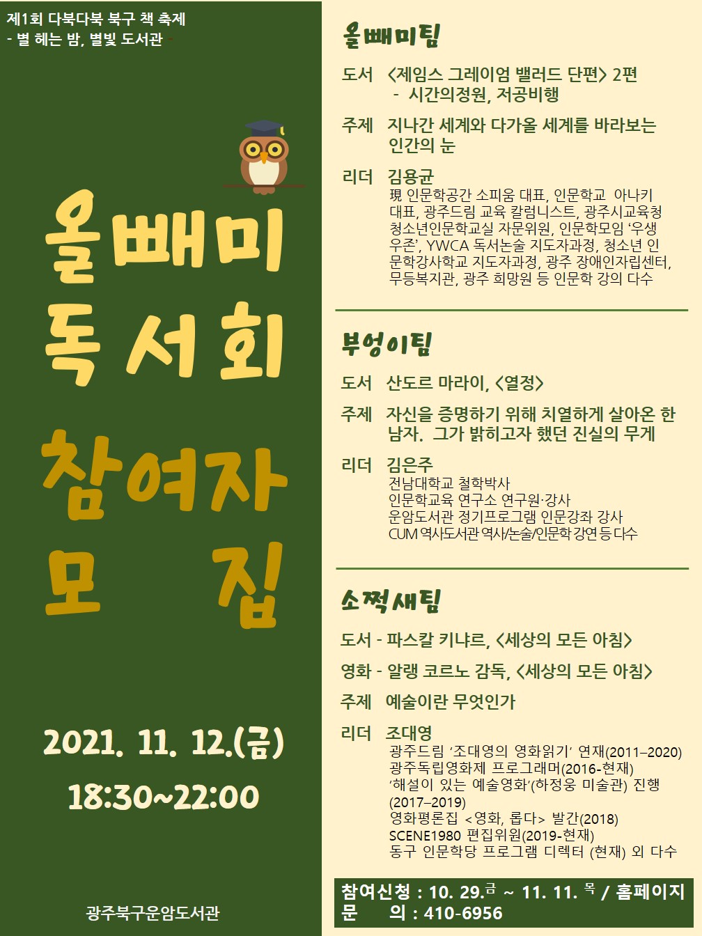 올빼미 독서회 - 독서리더와 함께 주제 도서 읽고 토론하기-