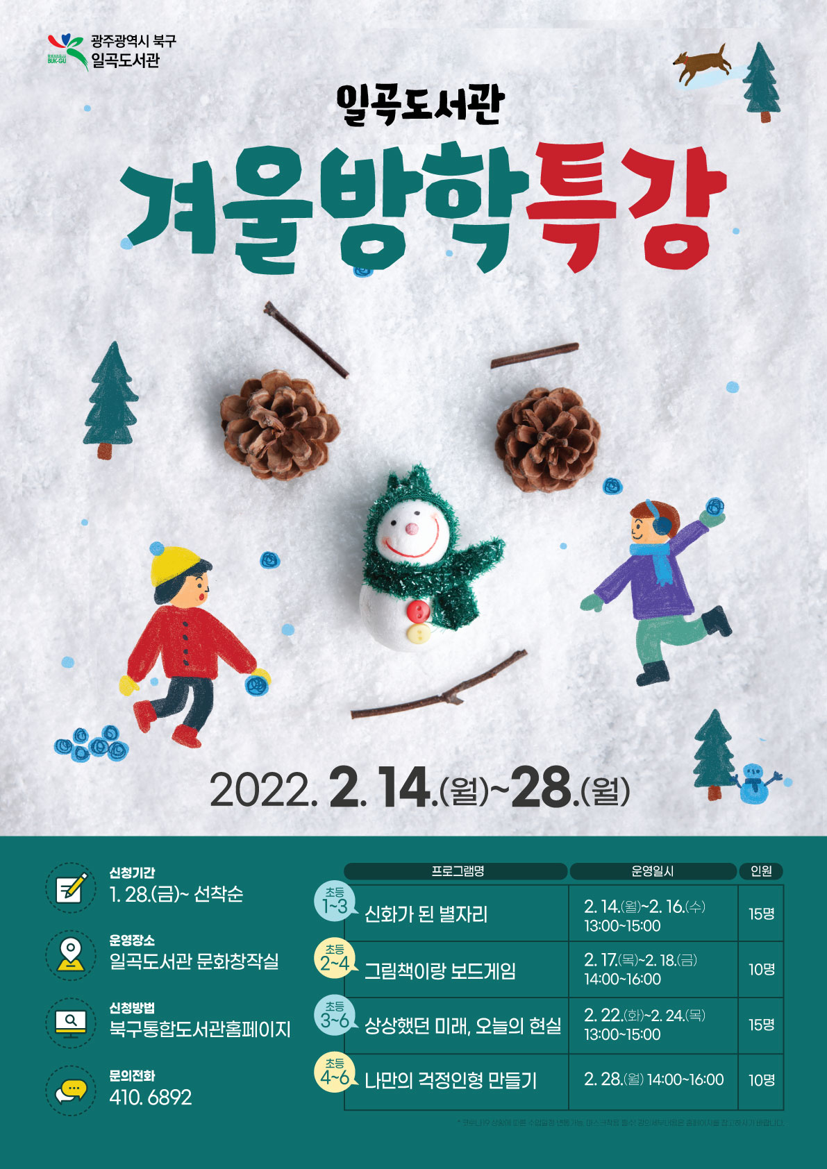 일곡도서관 겨울방학 단기 프로그램 안내