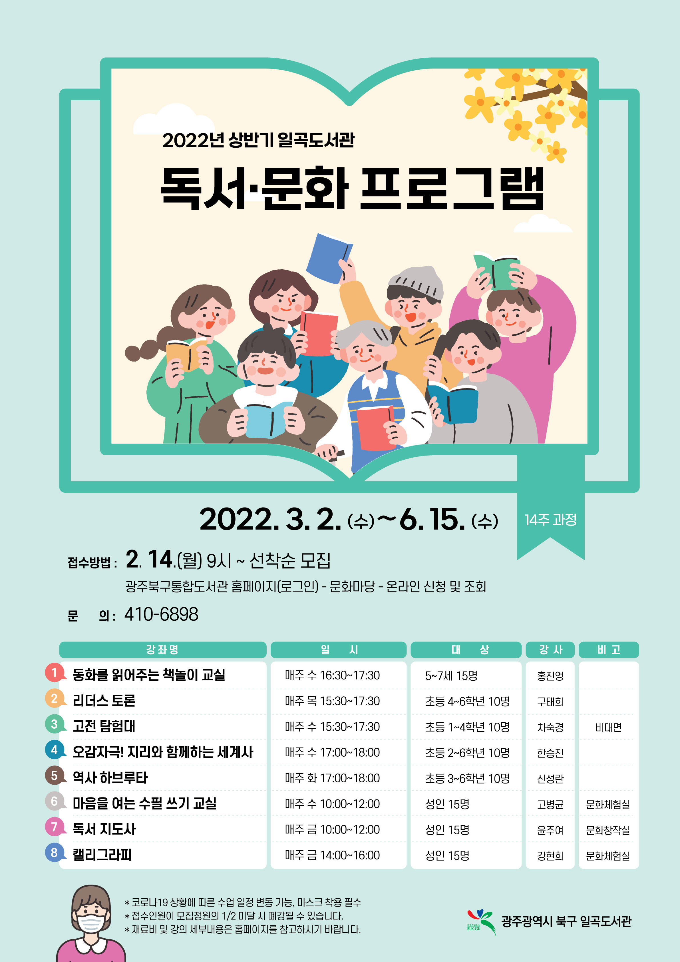 일곡도서관 상반기 독서문화프로그램 수강생 모집
