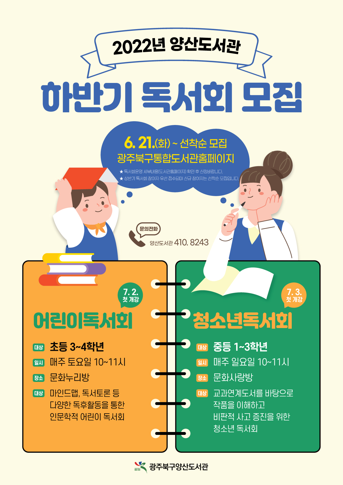 도서관새소식 양산도서관 하반기 어린이, 청소년 독서회 회원모집 작성자 : 운영자 조회수 : 3033 카테고리 : 양산 * 상반기 참여자 우선접수되며 신규 참여자는 선착순 모집입니다. 온라인 신청 바로가기 이전글 / 다음글 구분 카테고리 제목 제작 등록일 조회 이전글 운암 운암도서관 임시휴관 안내 2022-06-16 3630 다음 양산 [6.25특강] 6.25전쟁으로 보는 한국 현대사 2022-06-07 2734