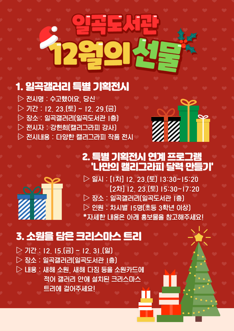 일곡도서관 '12월의 선물' 프로그램을 아래와 같이 운영합니다!