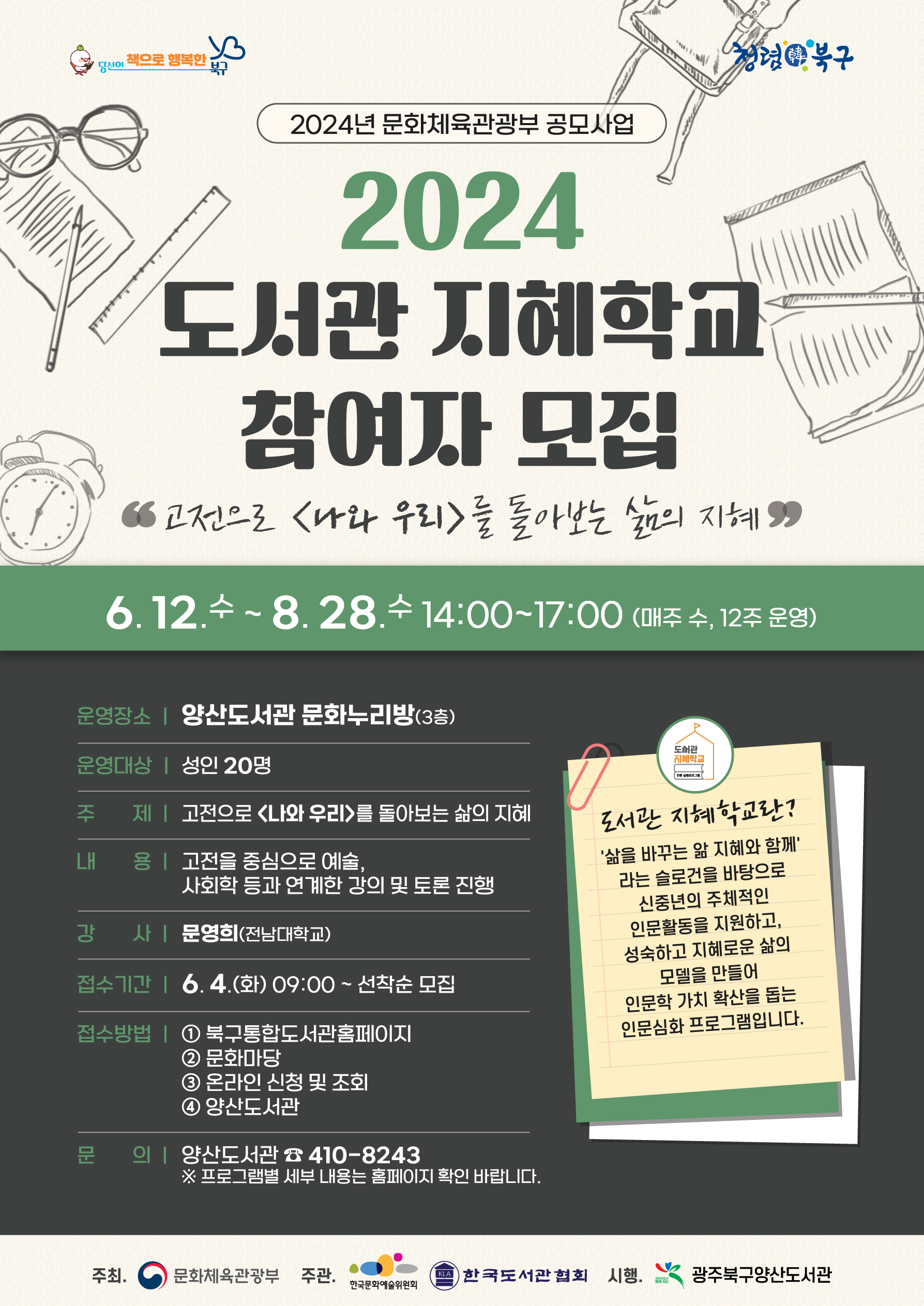 [인문강좌] 도서관 지혜학교 - 고전으로 <나와 우리>를 돌아보는 삶의 지혜 - 참여자 모집