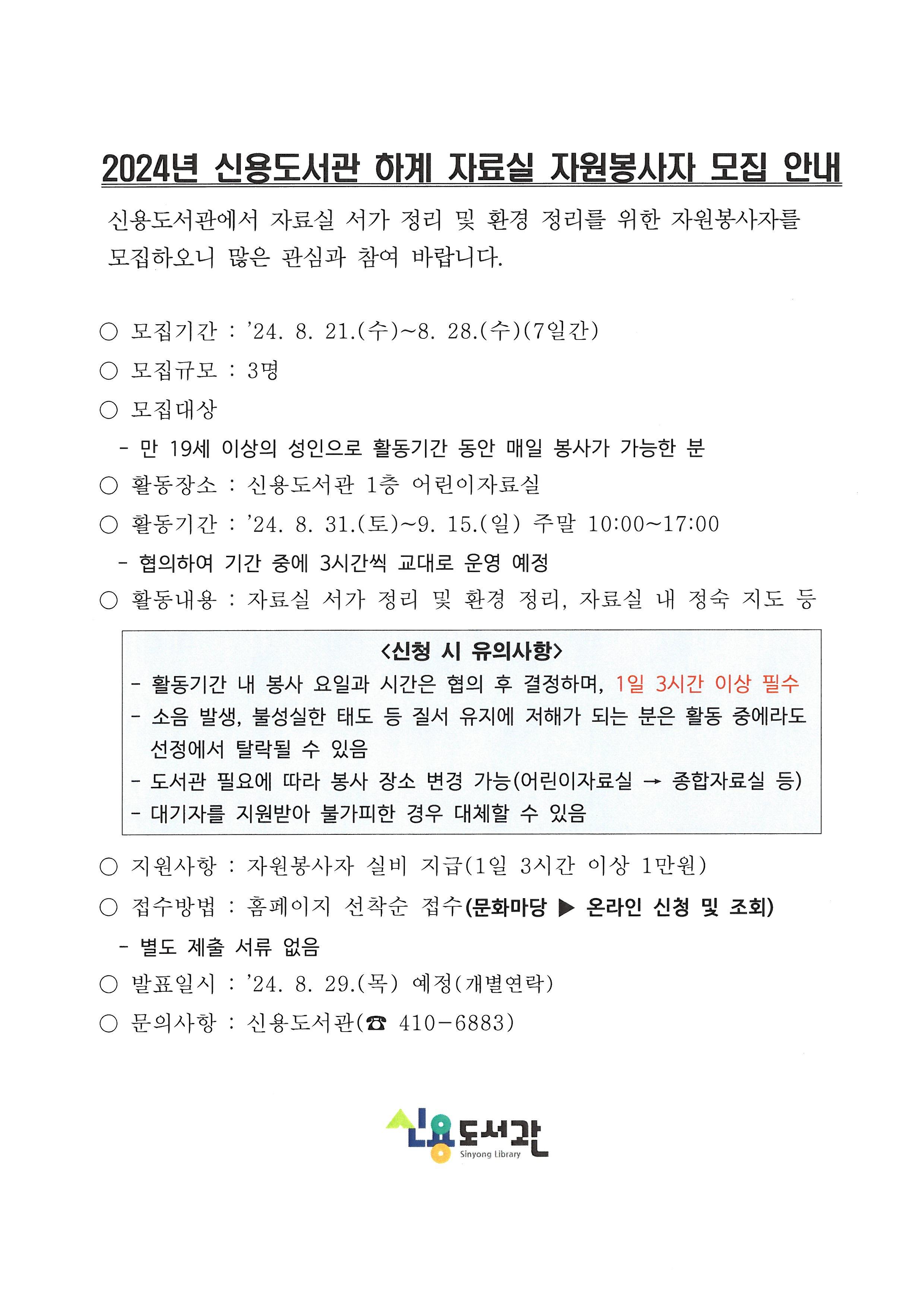 ※해당 봉사 활동은 1365 봉사 시간으로 인정되지 않습니다.※