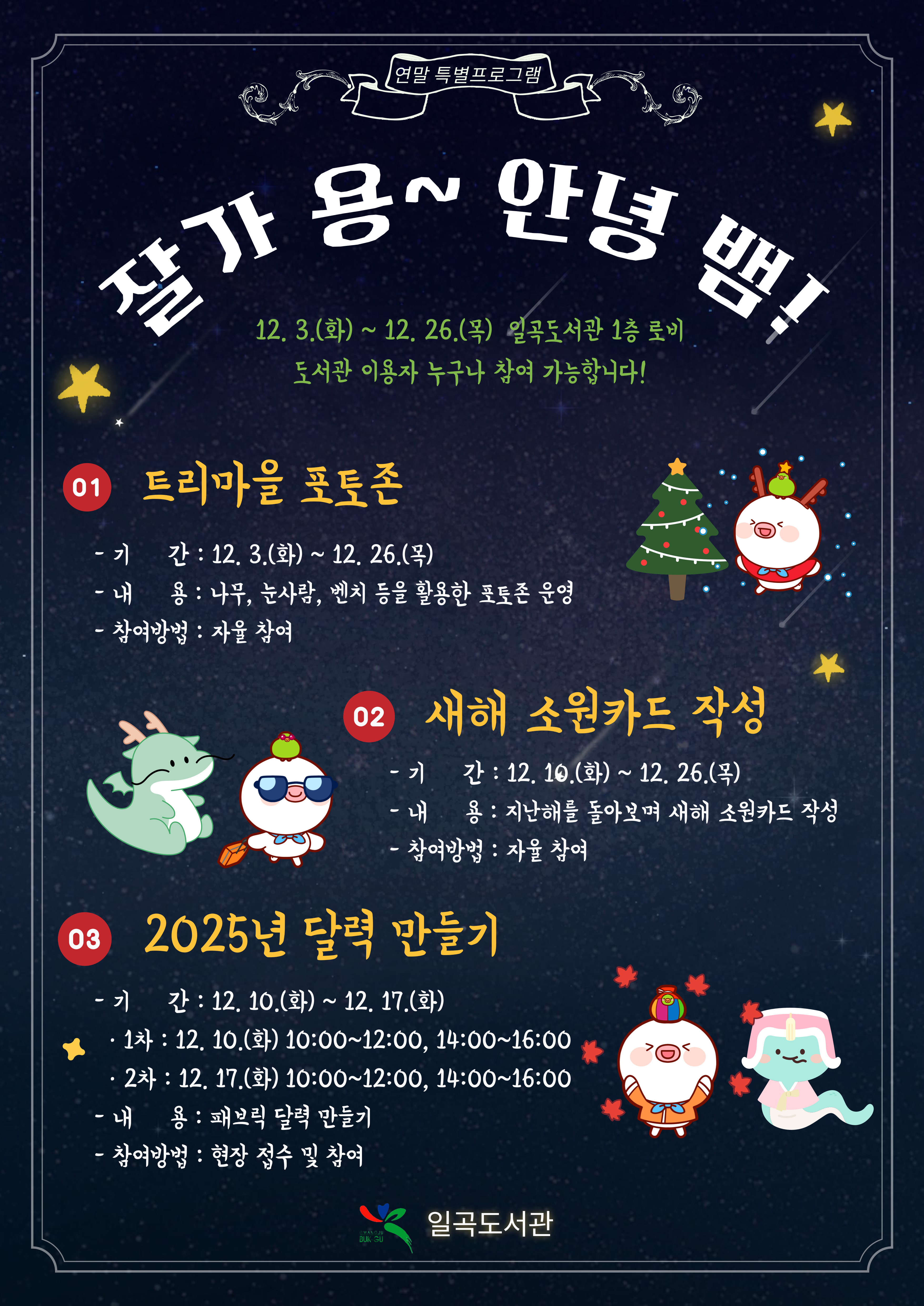 일곡도서관 연말 특별프로그램 「잘가용~ 안녕뱀!」 안내