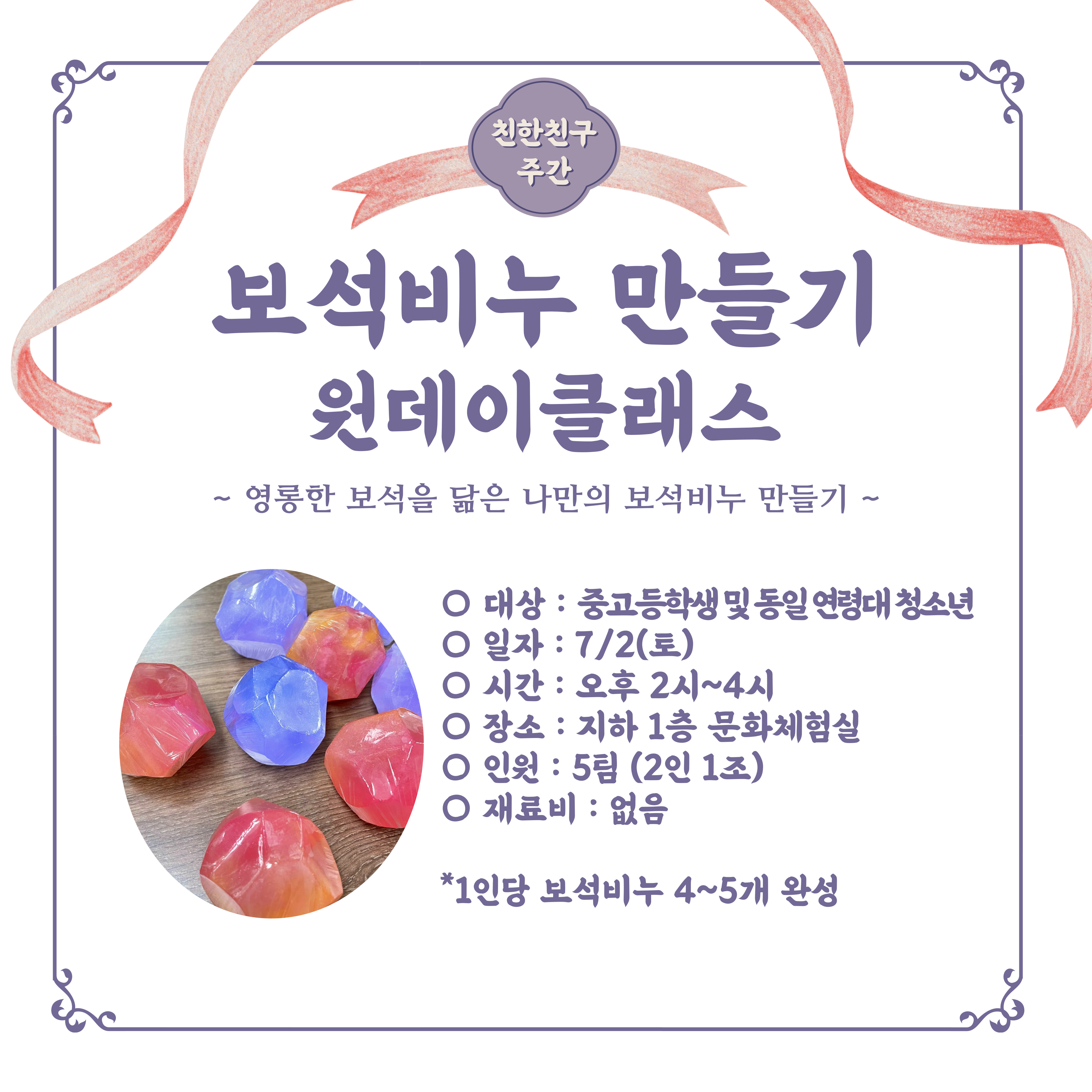[청소년 특화] 친한친구 주간 원데이클래스 - 보석비누만들기