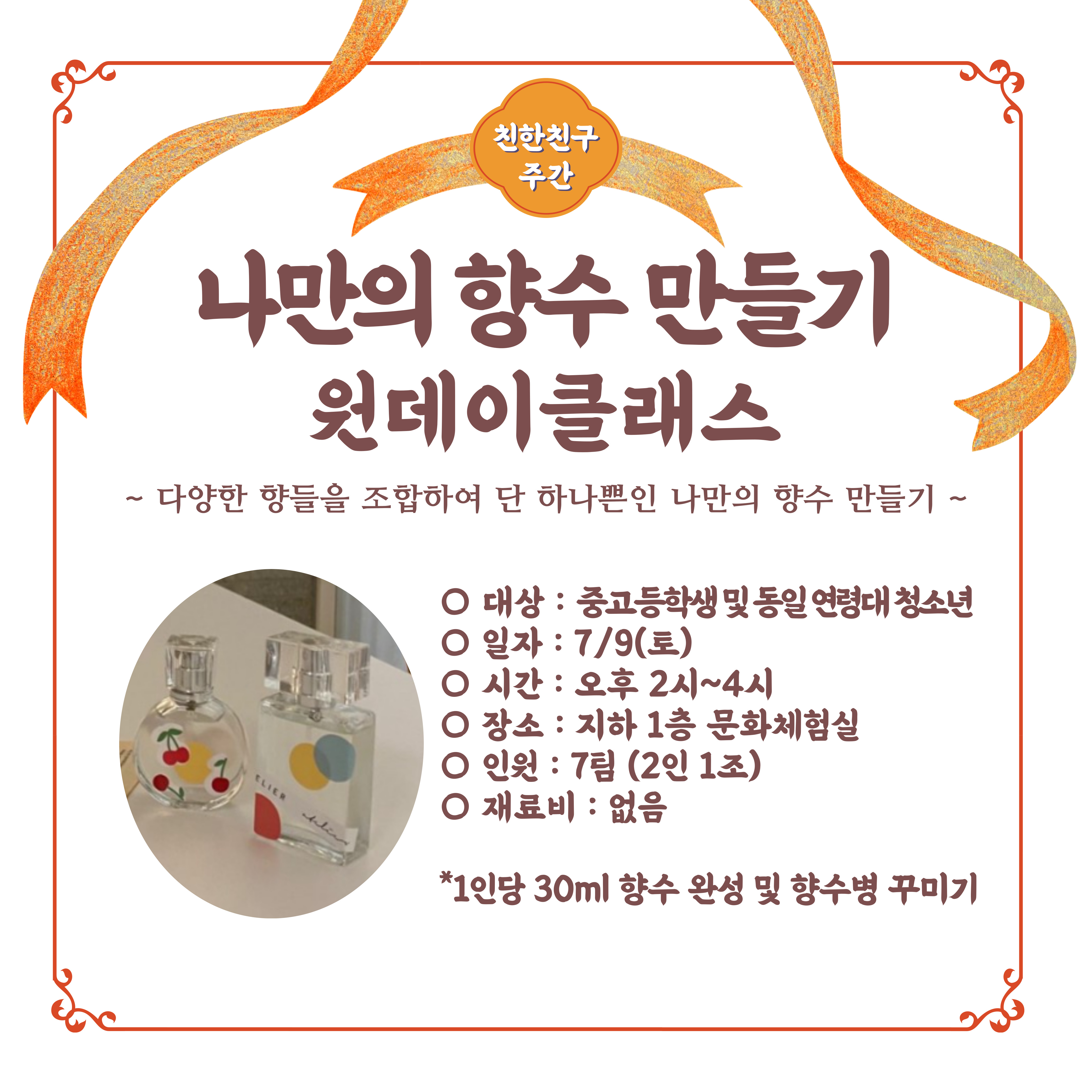 [청소년 특화] 친한친구 주간 원데이클래스 - 향수만들기