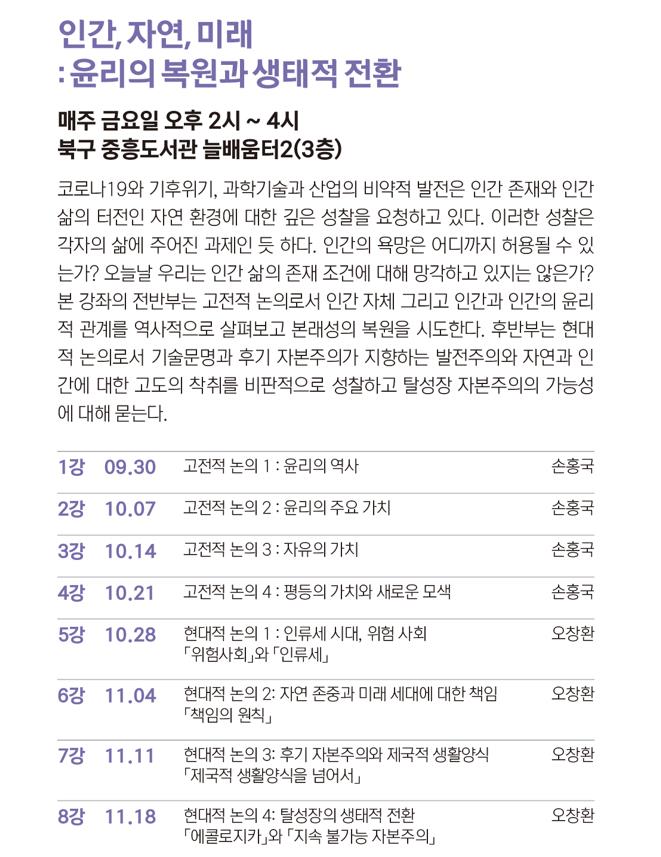 2022 시민인문학강좌]인간, 자연, 미래 : 윤리의 복원과 생태적 전환 (추가 모집)