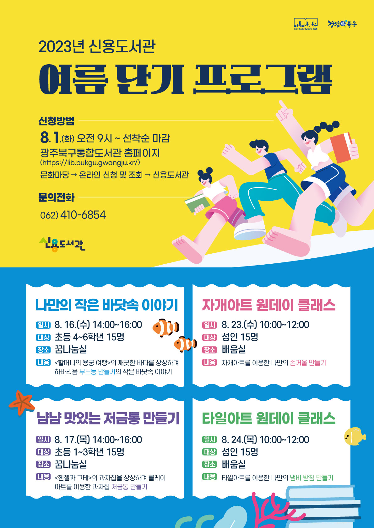 온라인 신청 및 조회 신용도서관 [여름단기] 냠냠 맛있는 저금통 만들기 강좌대상 : 초등 1~3학년 수강기간 : 2023-08-17 ~ 2023-08-17 14:00 ~ 16:00 (목) 접수시간 : 2023-08-01 09시 ~ 2023-08-14 23시 수강인원(인터넷/대기) : 15명 (5)명 강사명 : 송은영 장소 : 꿈나눔실 비용 : 신청승인 취소하면 승인 내역에서 삭제됩니다 정**(010-4***-2***) 2023-08-01 09:00 안**(010-3***-7***) 2023-08-01 09:00 이**(010-3***-5***) 2023-08-01 09:00 윤**(010-4***-4***) 2023-08-01 09:00 이**(010-3***-8***) 2023-08-01 09:00 김**(010-5***-6***) 2023-08-01 09:00 권**(010-9***-5***) 2023-08-01 09:00 이**(010-6***-0***) 2023-08-01 09:00 신**(010-3***-1***) 2023-08-01 09:00 김**(010-4***-8***) 2023-08-01 09:00 박**(010-3***-6***) 2023-08-01 09:00 임**(010-9***-3***) 2023-08-01 09:00 황**(010-9***-6***) 2023-08-01 09:00 권**(010-9***-5***) 2023-08-01 09:01 김**(010-2***-1***) 2023-08-01 09:01 대기 이**(010-6***-5***) 2023-08-01 09:01 이**(010-5***-1***) 2023-08-01 09:01 박**(010-2***-6***) 2023-08-01 09:01 최**(010-8***-5***) 2023-08-01 09:01 이**(010-3***-4***) 2023-08-01 09:01