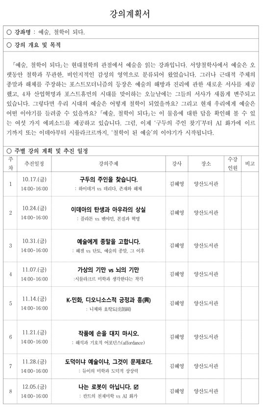 [인문강좌] 2025년 시민인문학 강좌 : 예술, 철학이 되다